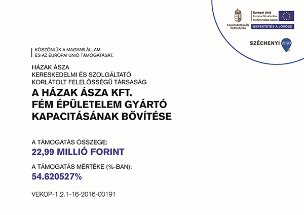 A HÁZAK ÁSZA Kereskedelmi és Szolgáltatási Korlátolt Felelősségű Társaság korszerű tűzgátló és hőszigetelt biztonsági ajtó kifejlesztését valósította meg a KFI_16-1-2016-0165 azonosító számú „Vállalatok K+F tevékenységének támogatása” (KFI_16) pályázati kiírás keretében.